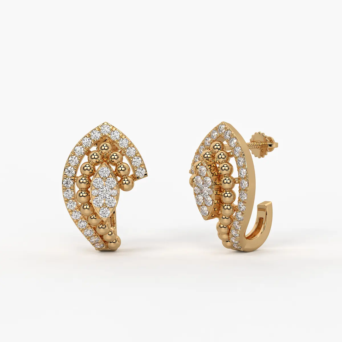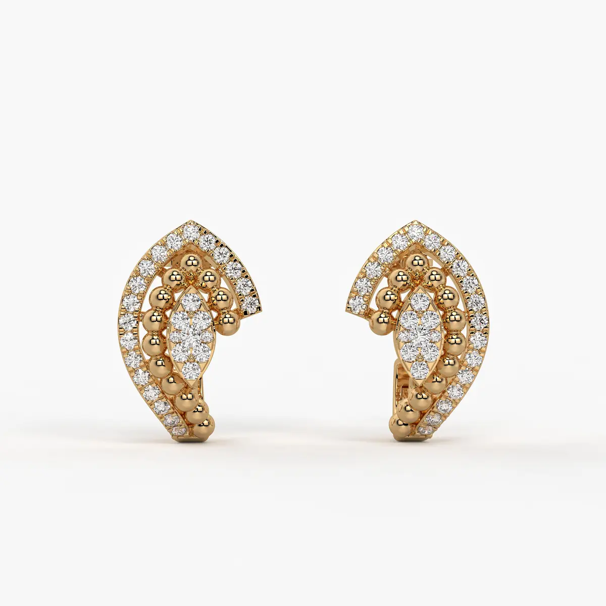 Aurora Crest Diamond Studs blend radiant gold curves with a sparkling floral cluster, perfect for daily elegance, office wear, and festive celebrations. Ideal for women aged 22?45, these studs complement ethnic outfits, classy formal wear, and sophisticated contemporary styles.