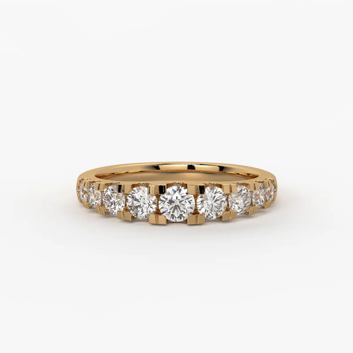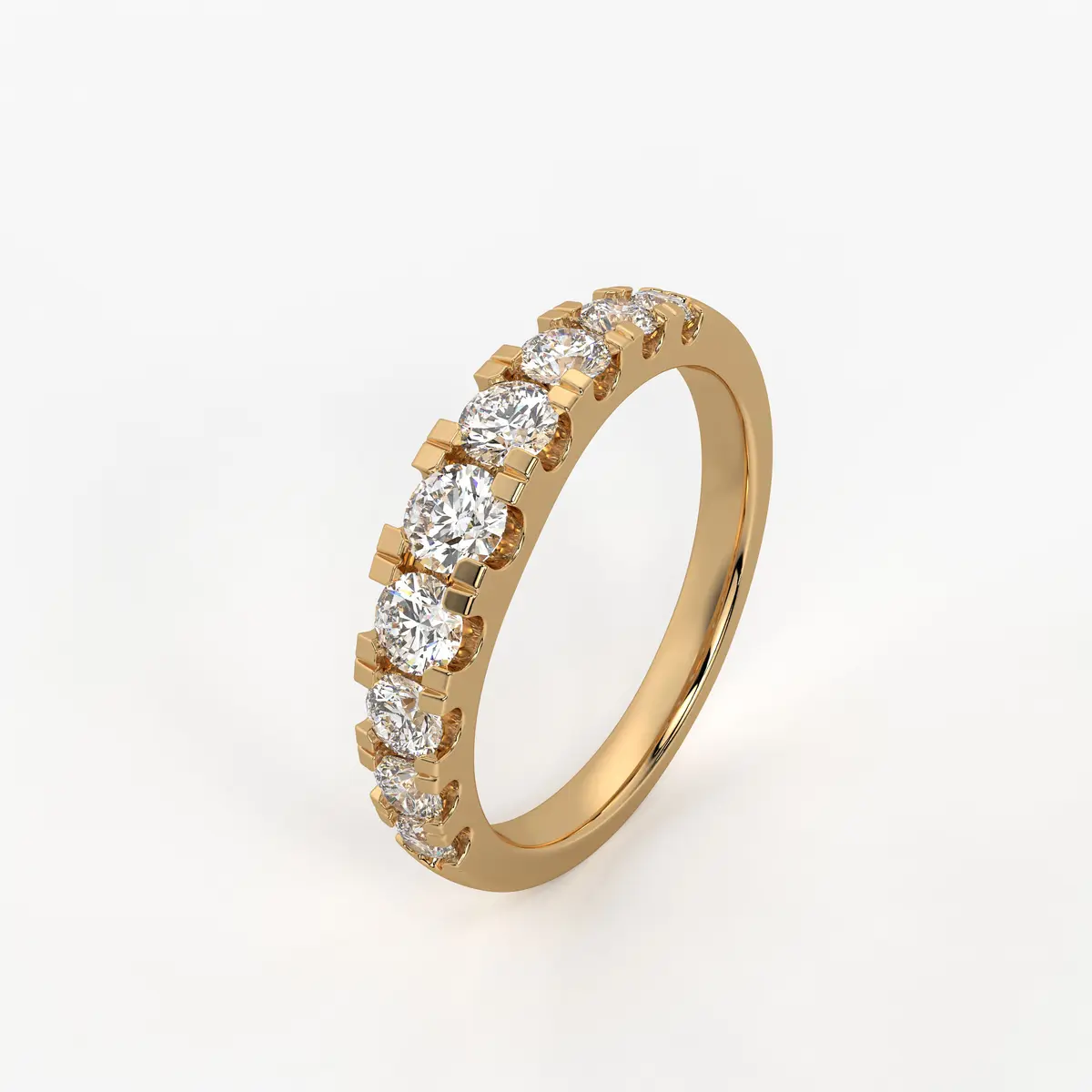 A sweet line of heart shapes wraps gracefully across the top of this ring, each one highlighted with a sparkling center stone. The slim band keeps the look light and wearable, while the repeating hearts add a romantic touch. Perfect for daily styling or as a thoughtful gift for someone special.