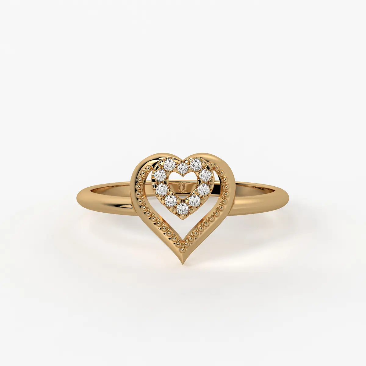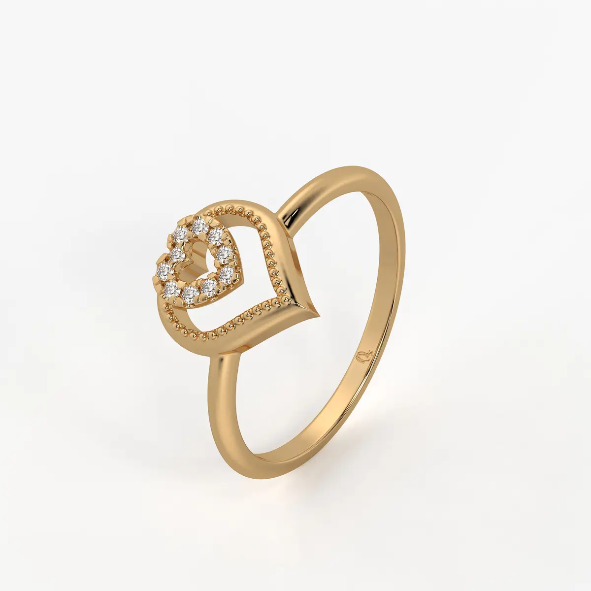 This ladies ring features a sparkling halo circle with a delicate leaf accent at the center. The open design gives it a light, modern look while the stones add just the right amount of shine. A graceful piece that works beautifully for daily wear or special moments.